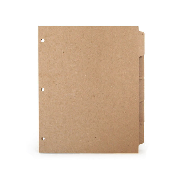 Made from strong and flexible 13-point natural fiber chipboard. 100% recycled, 85% post-consumer and 15% post-industrial recycled materialsSheet: 8.5" x 11", each tab has a 2" W x 0.5" H tab overhang Three-hole punch to fit ReBinder recycled bindersNote: Due to the variety of recycled content, the shade of the natural Brown Kraft color may vary.